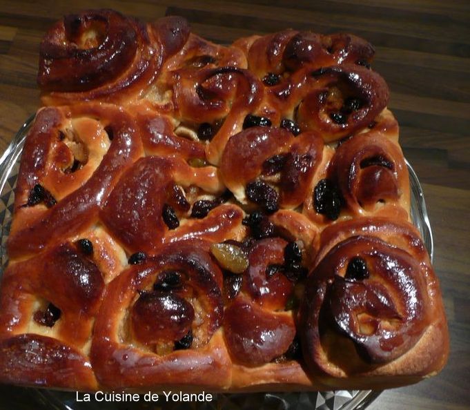 Depuis un bord recouvert, enroulez-la pâte comme pour un marbré. Pressez les extrémités ensemble pour les sceller, couper le pâton en 12 tranches et placez-les à plat dans le moule.