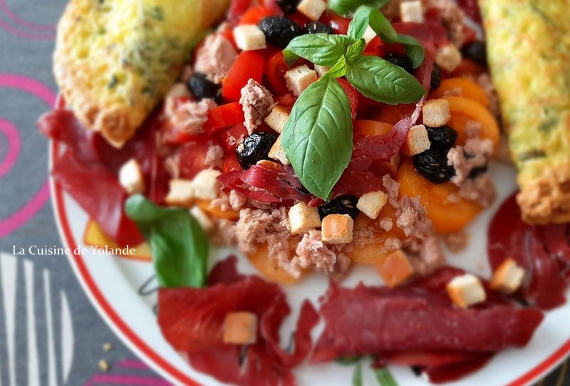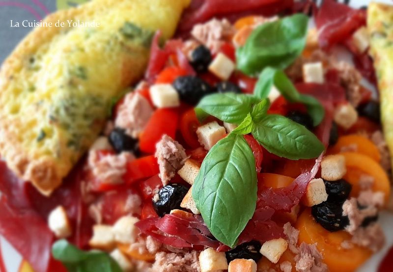 Le basilic et la ciboulette se marient parfaitement  sur ses mignonnes petites tomates et le parfum.des crêpes  aux crevettes en est exalté, j’ai réalisé ce plat unique en.vidant mon frigo  et mes placards et les ingrédients se sont bien combinés pour que je réalise ce plat frais ,coloré, délicieux.