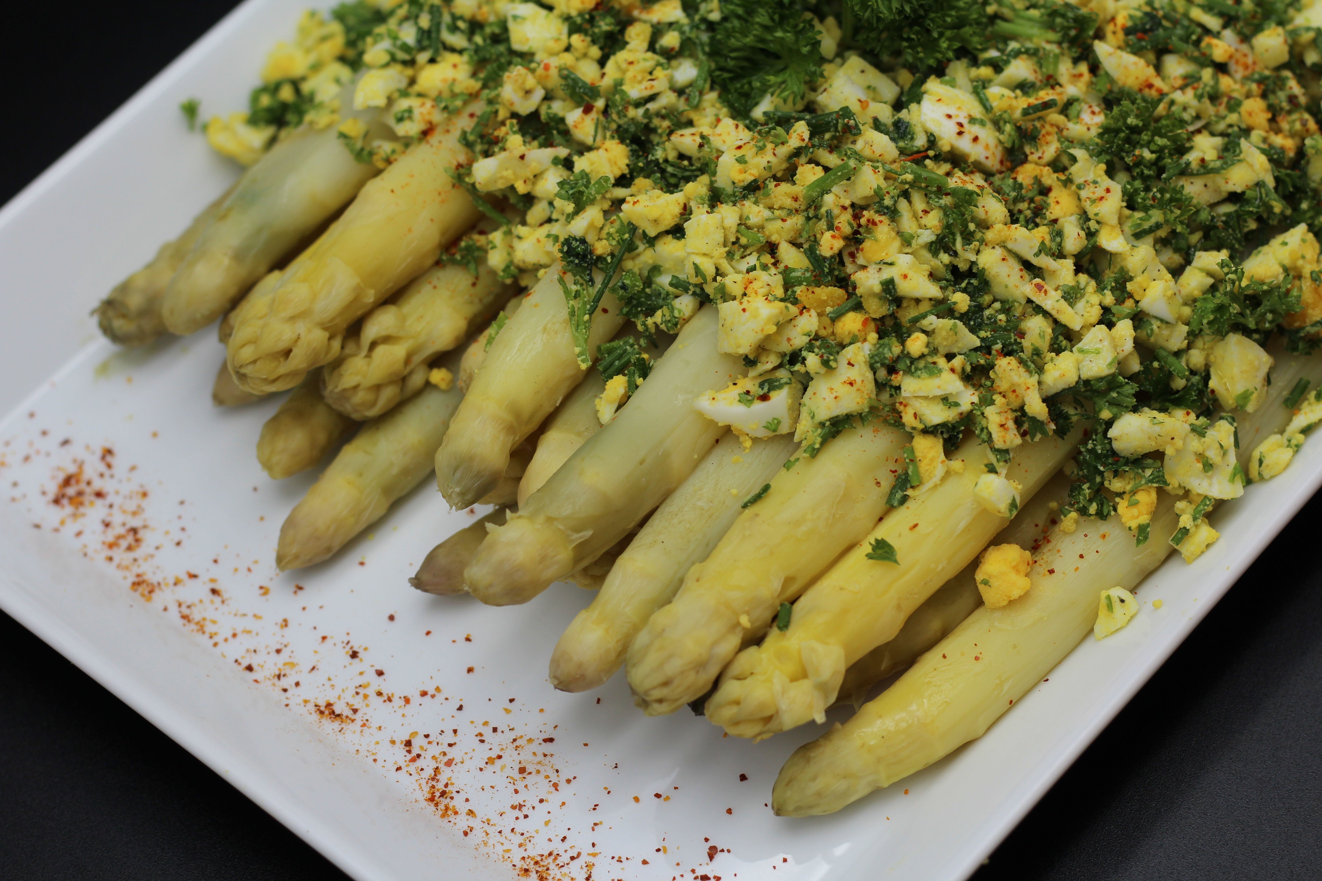 L’asperge aime s’entourer de saveurs douces, moelleuses, comme le beurre( fondu et parfumé d’agrumes, la crème surtout accompagnée de morilles.) les œufs, (mimosa, brouillés, ou à la coque).