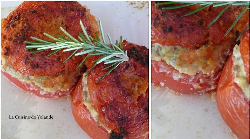 Farcir les tomates de cette préparation, les poser dans un plat à gratin, arroser d’un filet d’huile, couvrir avec les chapeaux