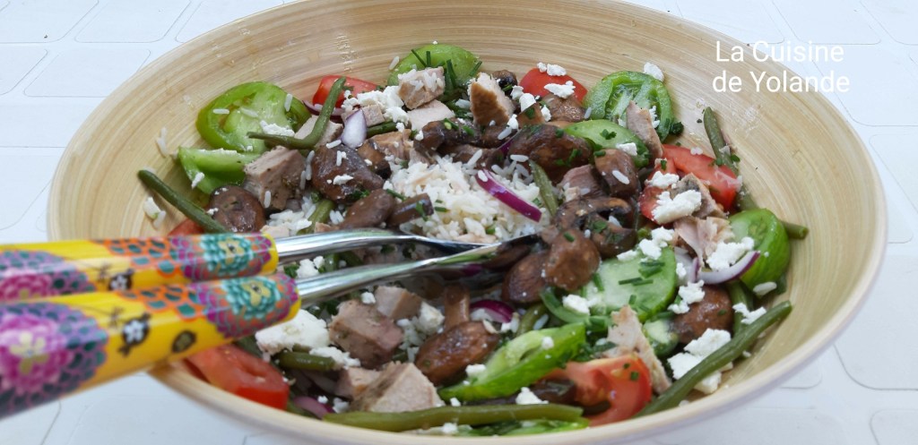 Trés fraîche , un plat unique comme je les aime pour un déjeuner dominical dans mon jardin à l’ombre de mes chênes.