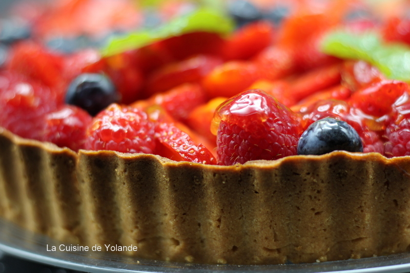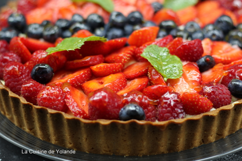 enfin pas que des rouges d’ailleurs , mais entre les cerises, les fraises, les framboises, les groseilles, les myrtilles , je ne sais plus ou donner de la tête, cela me donne envie de pâtisser pour les mettre en valeur, après 2 ou 3 Pavlova , tarte aux fraises, et sans oublier les clafoutis, ce soir je vous propose une tarte Tutti -Frutti ou plusieurs des ces fruits ont la vedette Elle est top. Allez assez discuté passons aux choses sérieuses : la recette.