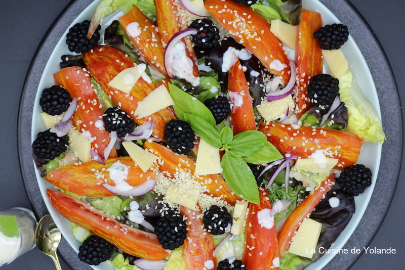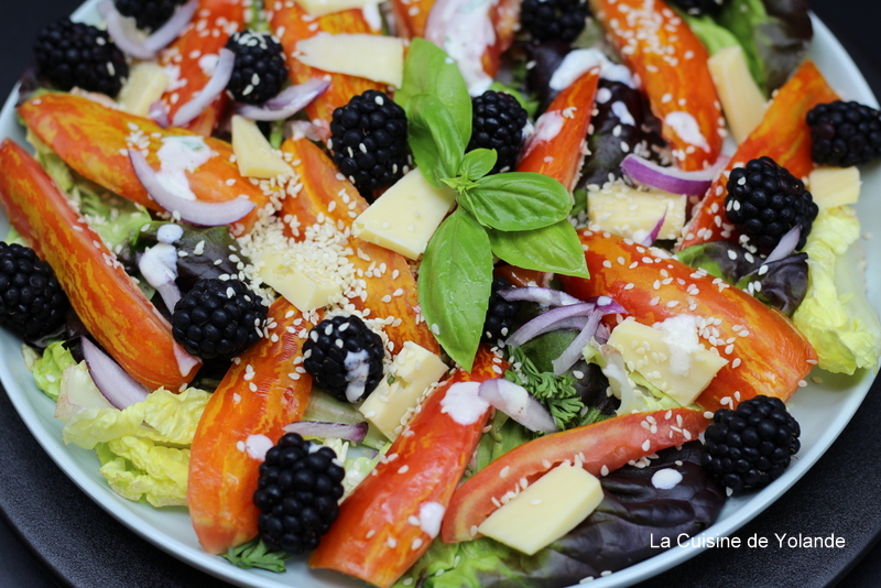 Une salade estivale, tout en fraîcheur avec des fruits sauvages qui donnent une saveur champêtre à cette salade colorée comme je les aime