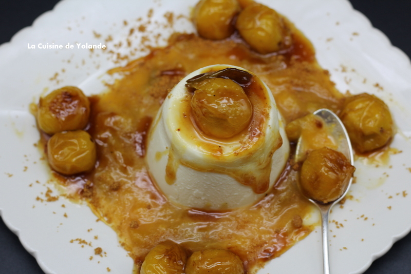 Le lendemain avant de servir faire caraméliser la vingtaine de mirabelles réservées dans le beurre salé et les 20 gr de sucre en poudre vanillé, laissez caraméliser tout en remuant, les mirabelles doivent être bien caramélisées mais entières.