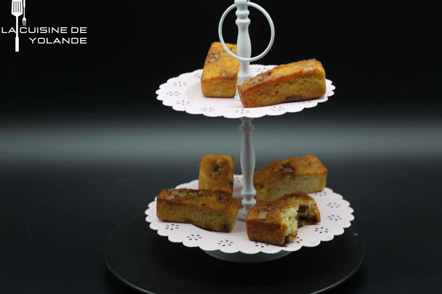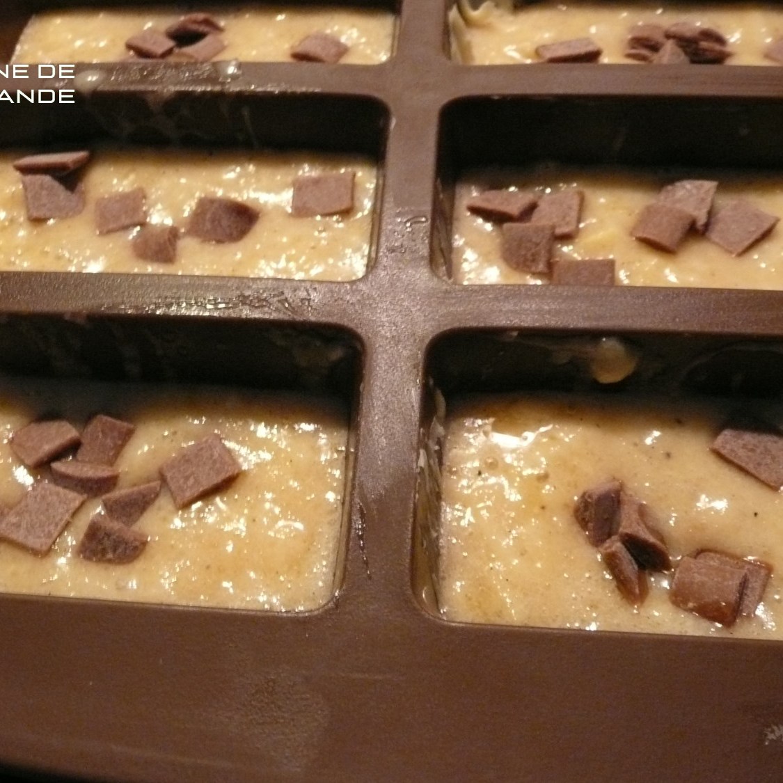 Rapez dans la pâte la pomme, versez cette préparation dans des mini-moules à cakes pour moi , enfoncez des Chunks au caramel dans la pâte.