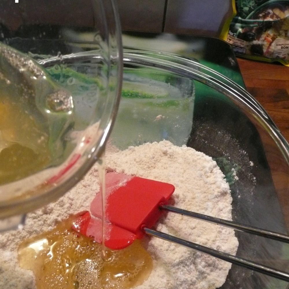 Ajoutez les blancs d’oeufs non battus, remuez doucement l’ensemble.