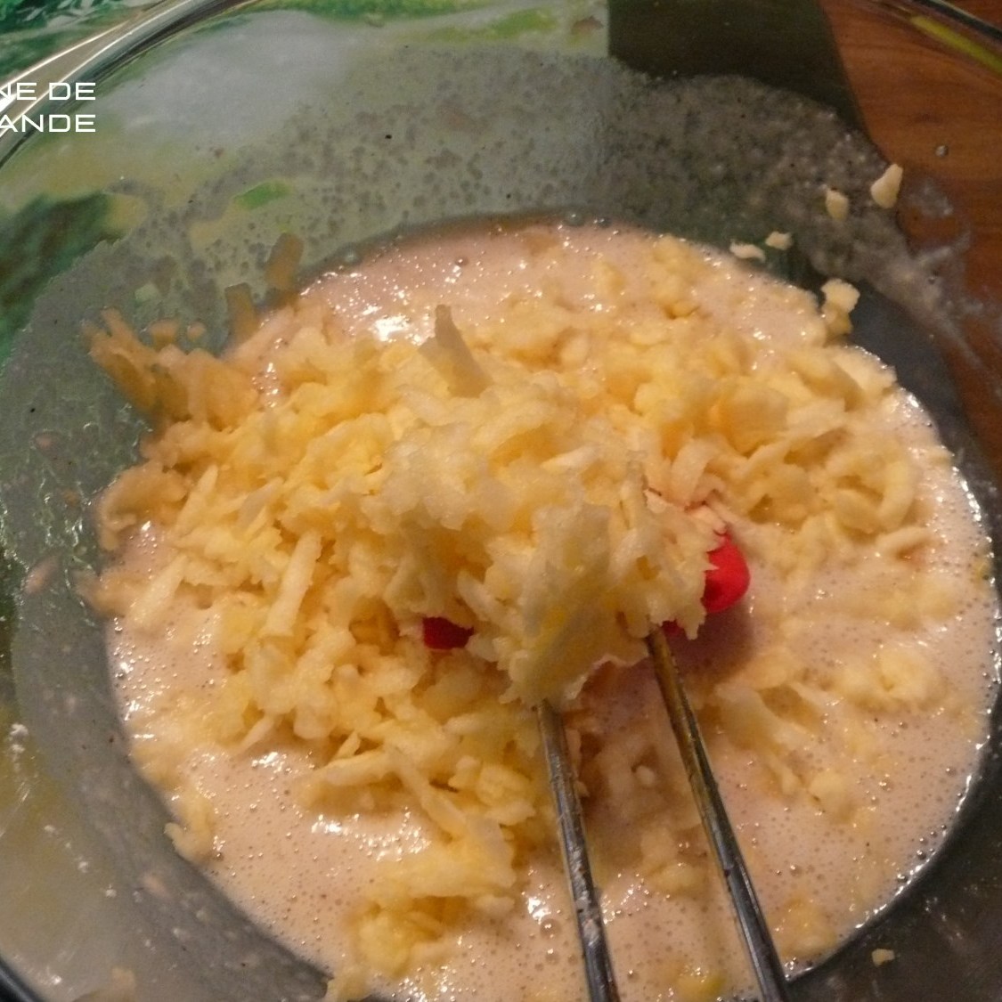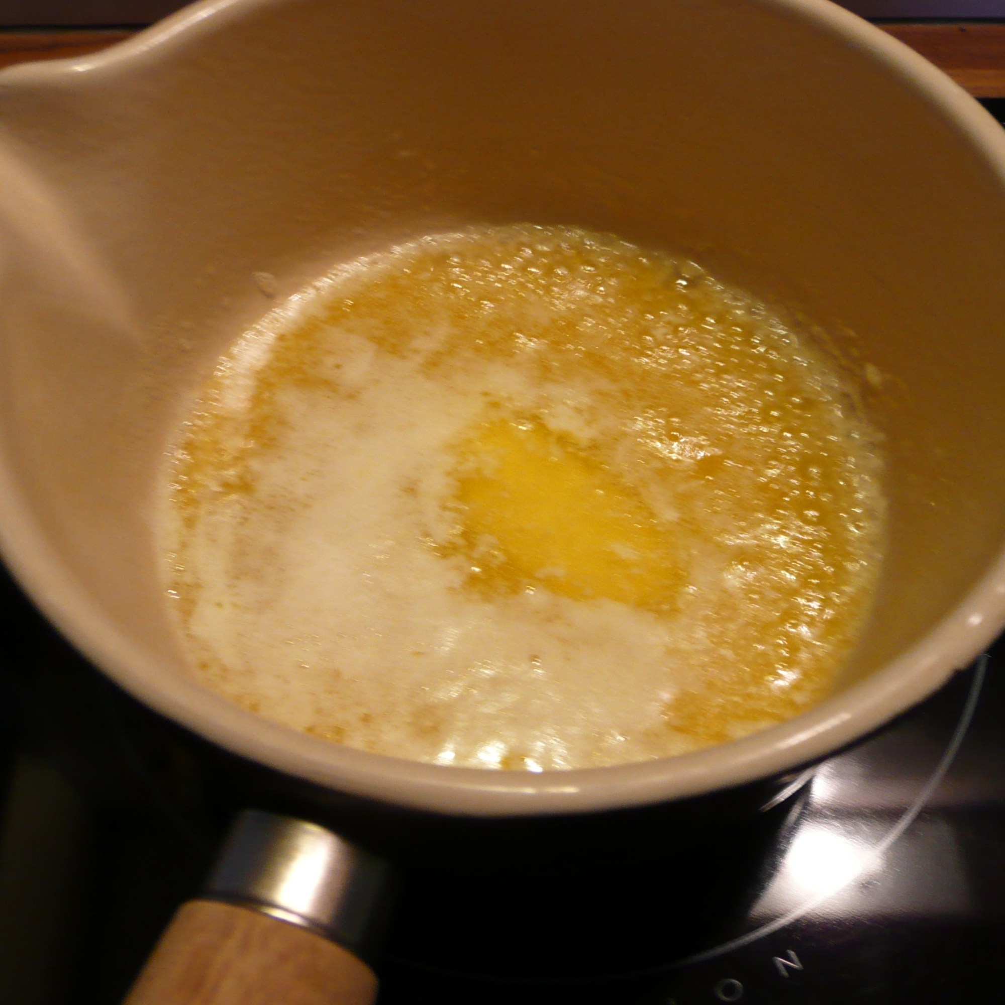 Faites fondre doucement le beurre dans une petite casserole en fonte pour moi , il va prendre une jolie couleur noisette Laissez tiédir. Et incorporez-le à la préparation .