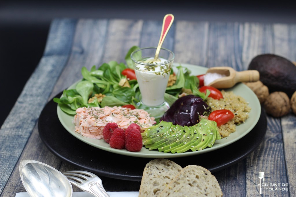 Ceci dit, waouh quelle assiette joliment dressée obligatoirement cela met en appétit je trouve, saine et équilibrée facile d’imaginer le plaisir à la manger.