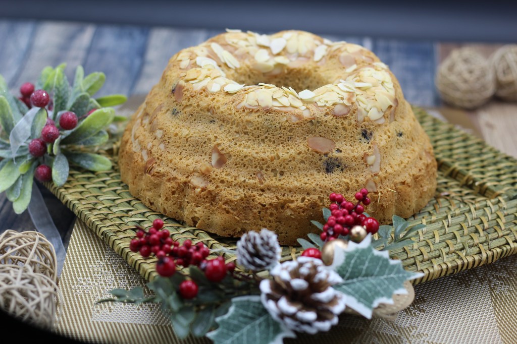 Cette année j’ai eu envie d’une nouvelle version du Kouglof , l’an passé j’avais choisi le classicisme car j’aime bien respecter les traditions Kouglof aux raisins secs et au Kirsch.