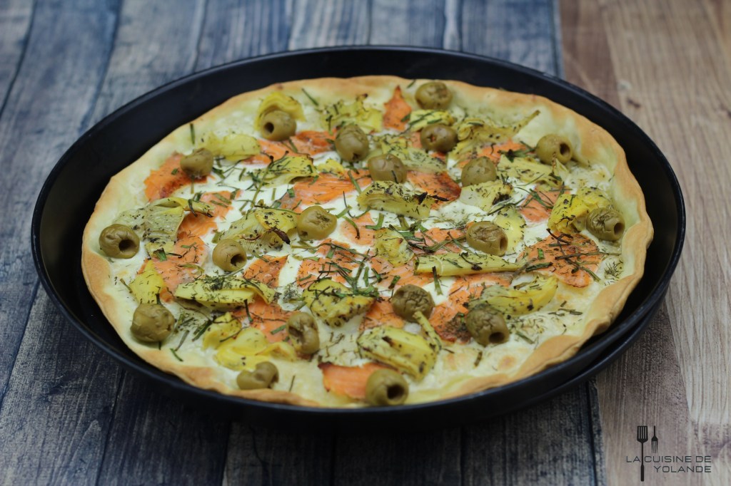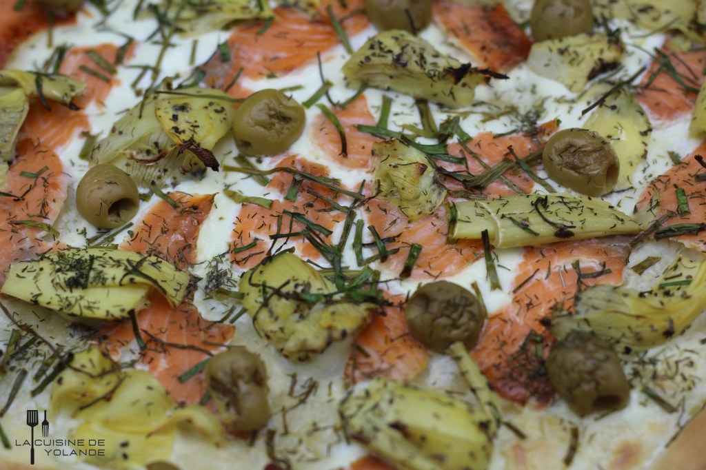 Moi aussi j’aime bien la pizza blanche, enfin moi je l’appelle de la mer car en plus du saumon j’y ajoute des crevettes roses. Je la réalise de temps en temps également ! C’est une version aussi bien sympathique la tienne, merci Yolande.