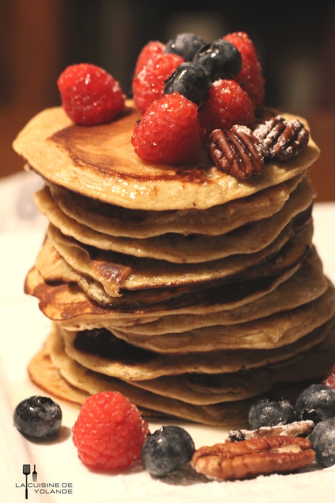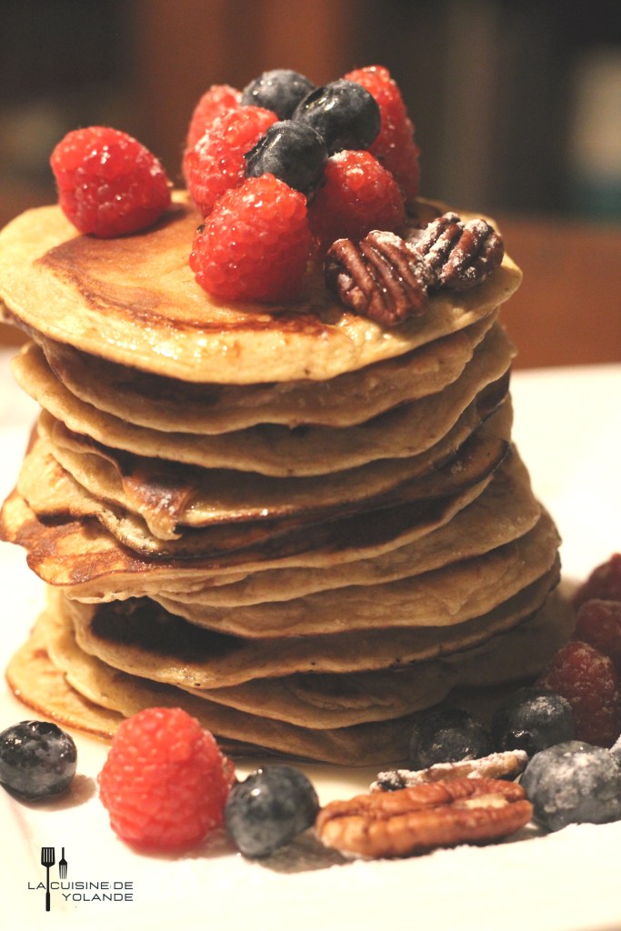 1. Tu es très dure avec toi ! moi je les trouve sublimes tes pancakes et je le pense ! En plus les avoir faits avec les ingrédients que tu décrits, ils doivent être super bons. Moi je ne faisais des pancakes que lorsque mes petites filles venaient en vacances. Je les préparais à l’avance, les enveloppais un par un dans du film étirable et je les congelais enveloppés dans un sac soudé. Un petit tour au MO ma petite Oriane pouvait ainsi en manger tous les matins ! Elle adorait ça. Elle aurait été ravie de goûter aux tiens ! Gros bisous Yolande !! Comme promis il fait froid ! 1° ce matin !! Bonne journée