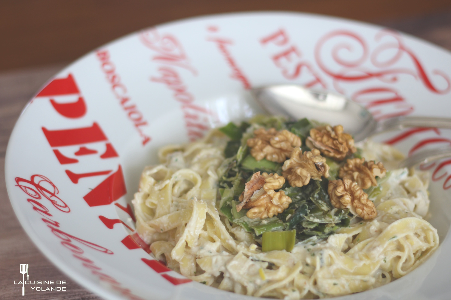 Cette sauce a l’air bien gourmande,. Les noix me filent des aphtes mais peut être que là ce ne serait pas pareil que de les croquer si je n’en mets pas ensuite entières ? à voir. Bravo pour ce petit régal. Les poireaux c’est top je ne les changerais pas contre les brocolis ! Gros bisous Yolande