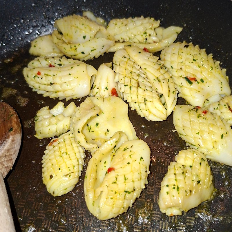 - Quand les seiches sont un peu dorées, retirez -les du feu et réservez au chaud