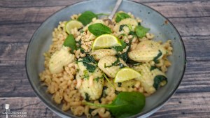 Voilà un plat pour 1 pers vite préparé qui se révèle délicieux. Un repas équilibré avec des protéines, des féculents, et des fibres. Si vous n’aimez pas les seiches , vous pouvez les remplacer par des crevettes, ou des pétoncles.